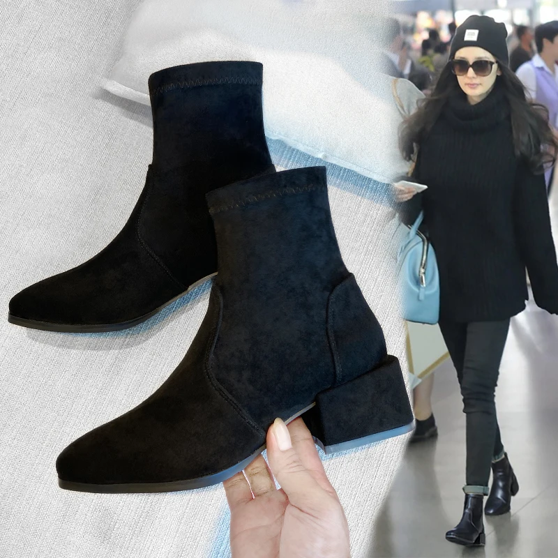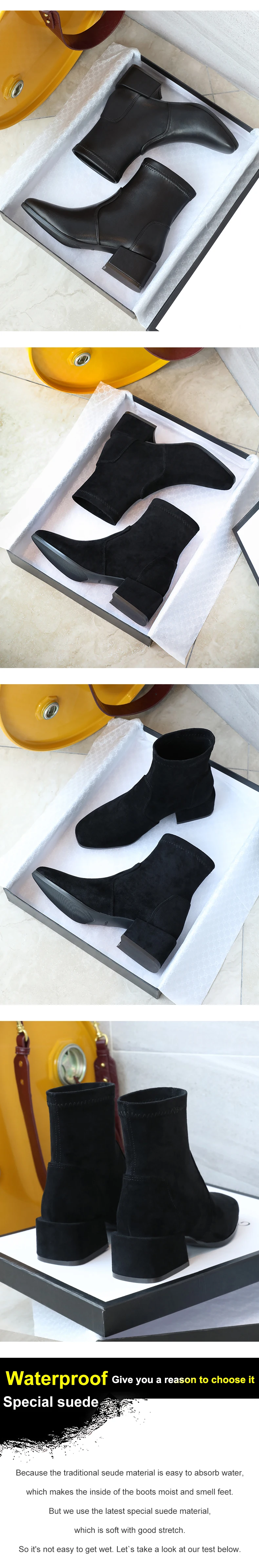 Customized Wholesale Women Shoes and Boots 2023 Black Leather Suede Fashion Sexy Thick Heel Ankle Boots Winter Shoes for Women