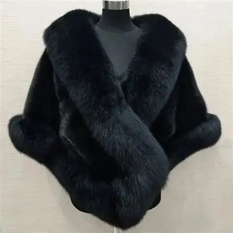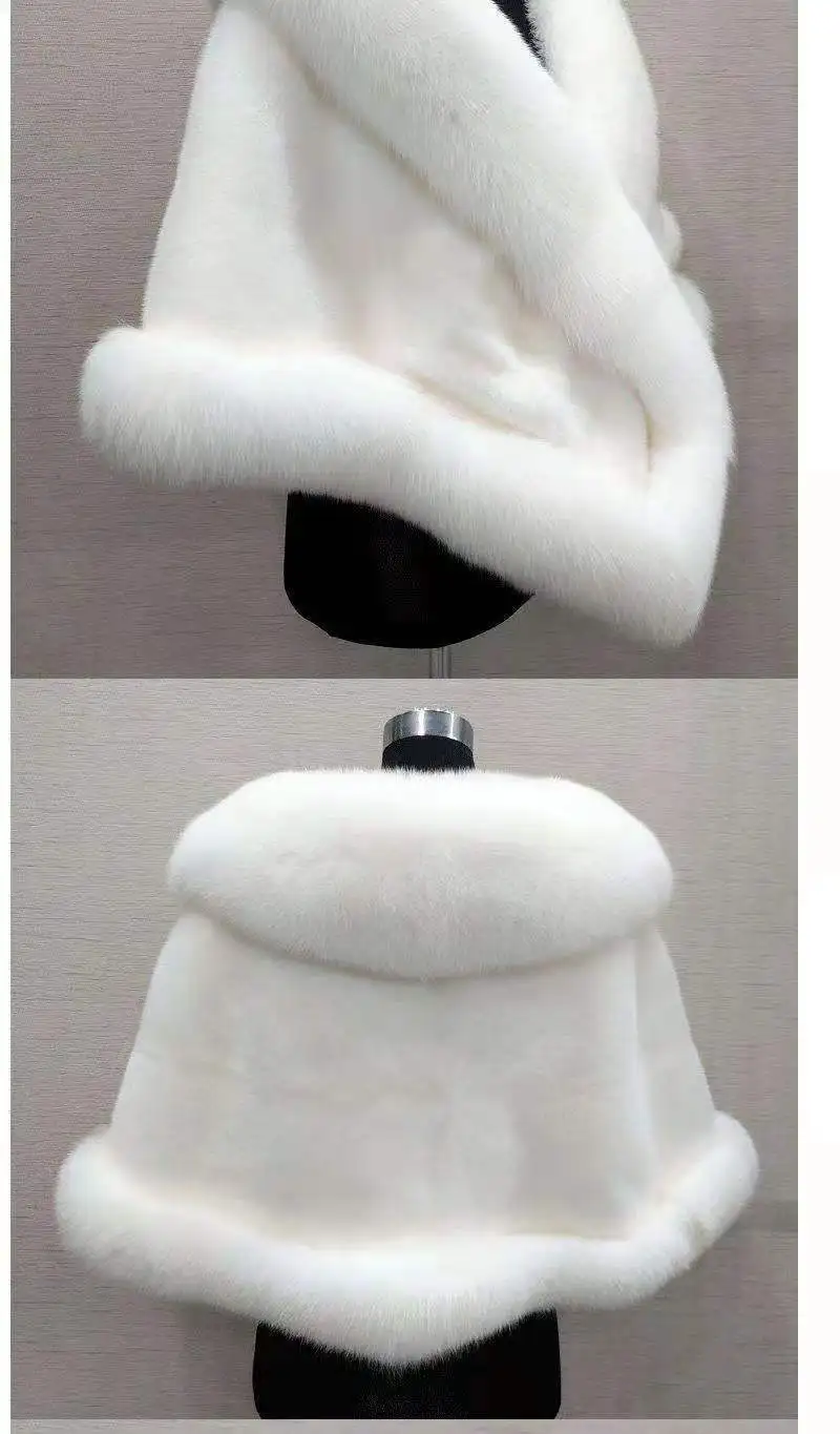 Lady Luxury Quality Fluffy Cape Coat Women's 2024 Faux Fur Shawl Coats