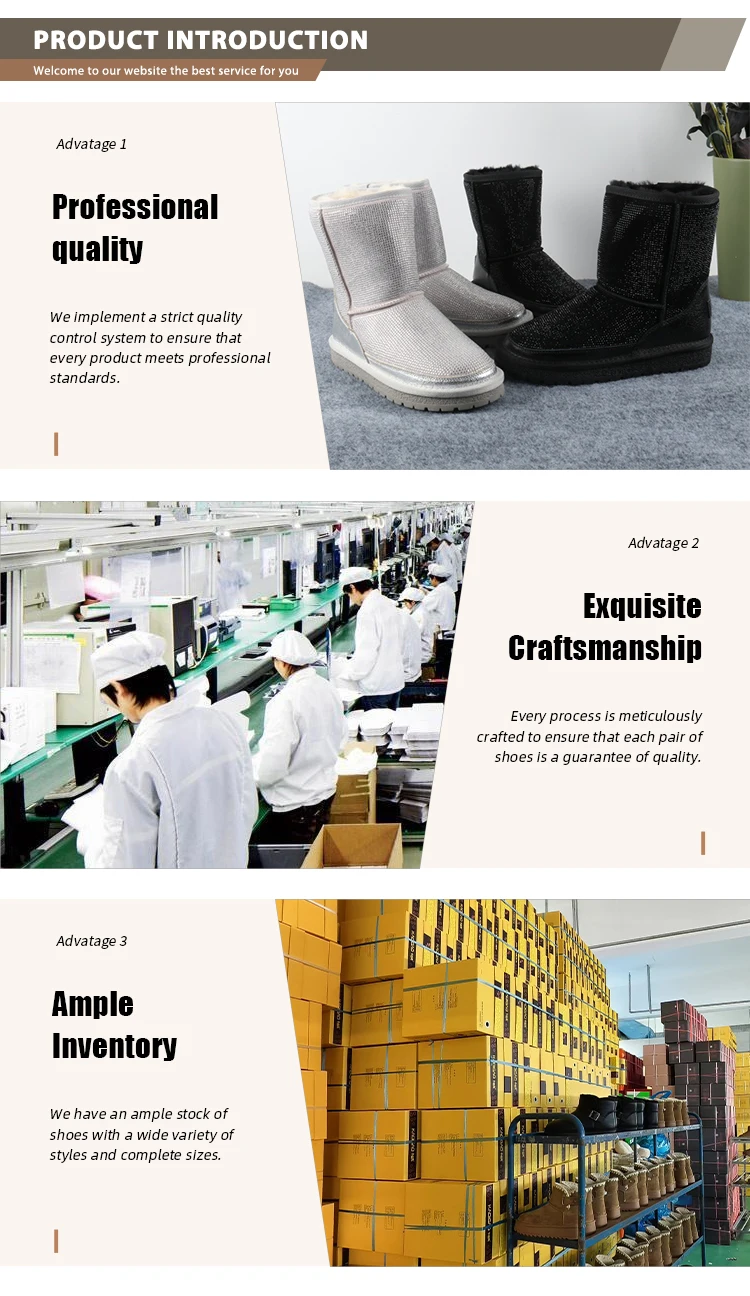 We are a manufacturer specializing in foreign trade shoes and boots. Engaged in foreign trade for 15 years. mainly focusing on high-end customization of snow boots and parent-child snow boots.The company has its own brand. which can be customized with samples. customized by customers' own brands. and has customized products for many major brands.After years of intensive cultivation. the company has carried out business in Mongolia. Russia. Kazakhstan. Ukraine and other countries.. Established a long-term and stable cooperative relationship. and won wide praise and trust.At present. it is actively exploring overseas markets and seeking cooperation.