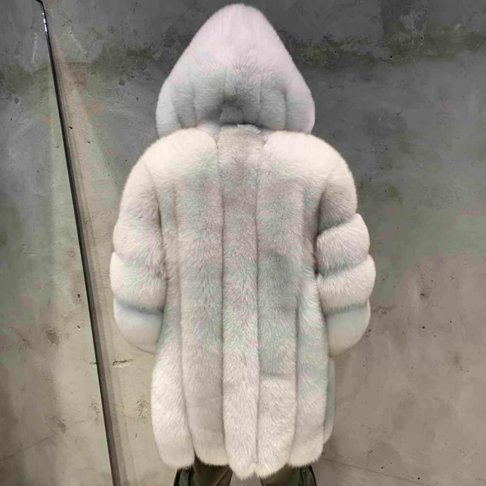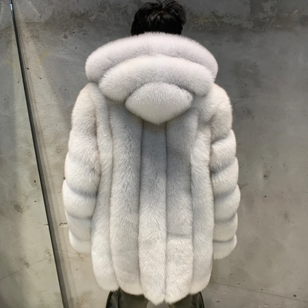 Winter Hooded Natural Fur Coats Fluffy Warm Fox Fur Coat Men’s Hoodie Fox Fur Coat
