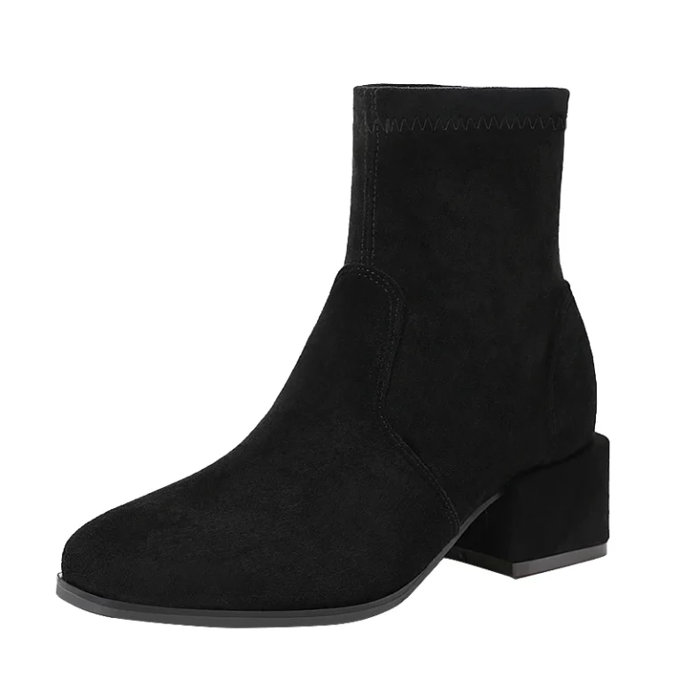 $8.70Customized Wholesale Women Shoes and Boots 2023 Black Leather Suede Fashion Sexy Thick Heel Ankle Boots Winter Shoes for Women