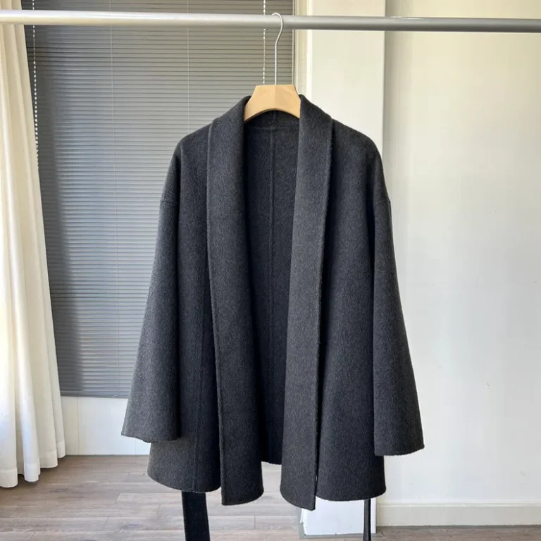 $8.19Cashmere Wool Lapel Tie Waist Double-Sided Wool Coat Jacket Autumn Winter